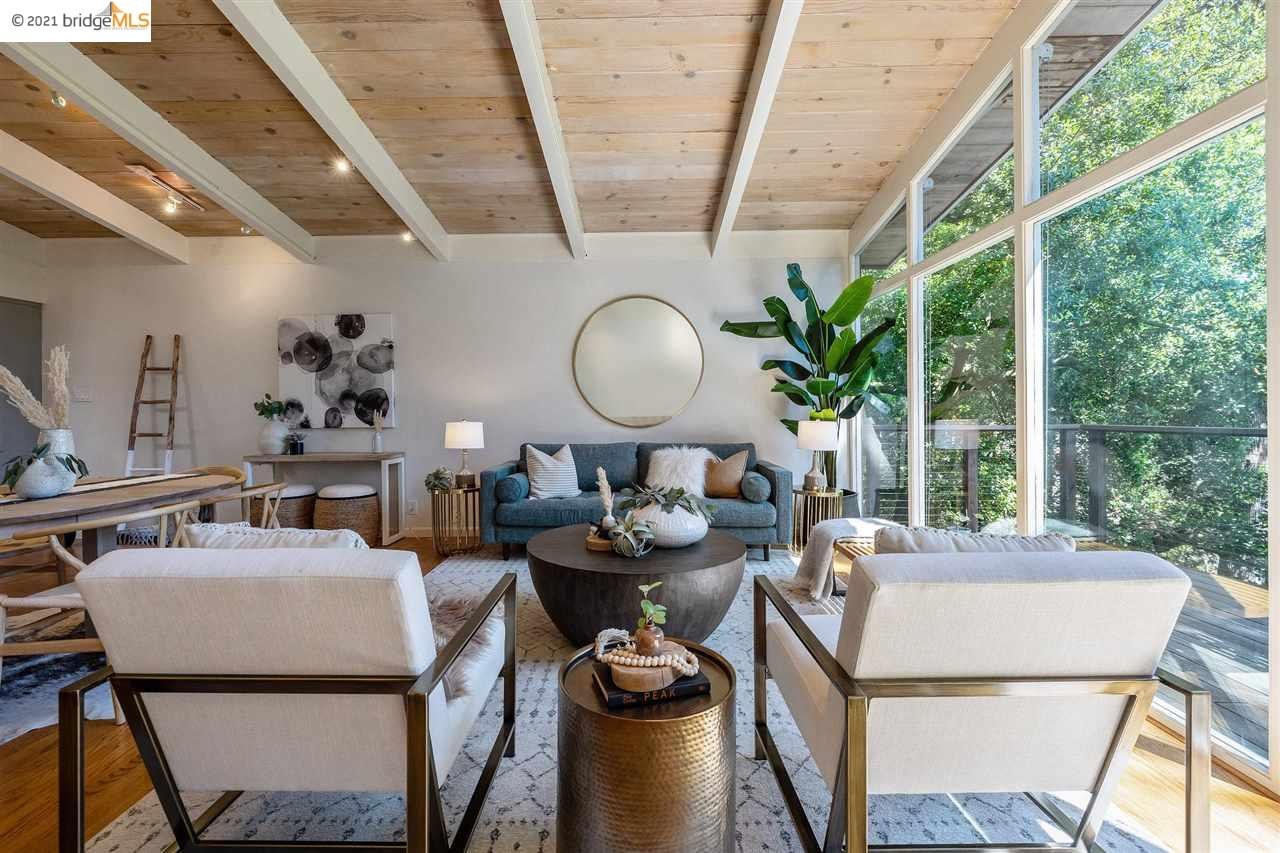 Welcome to Saroni Drive’s serene mid-century modern retreat. Located in a private, forested setting, this 4++/3 home offers a truly peaceful & relaxed oasis close to the Village. Built in 1959, the interior offers classic mid-mod details such as vaulted wood-clad ceilings, walls of glass, and period-inspired lighting. The great room is perfect to feel connected to all, including the hummingbirds that visit outside on the expansive deck. The luxurious primary bedroom suite features direct access to the outdoors and a freshly updated bathroom that pays homage to the period. The family room also flows outside to enjoy summer in the backyard. With a home office, home gym/yoga studio, 2-car garage, ample storage areas, and updated kitchen & bathrooms, there is nothing left to do but move in and enjoy the home and its friendly community. Saroni becomes a pedestrian-only neighborhood festival during Halloween and Montclair Village is moments away. Make it Yours - OPEN SUN 6/6 2-4:30pm.